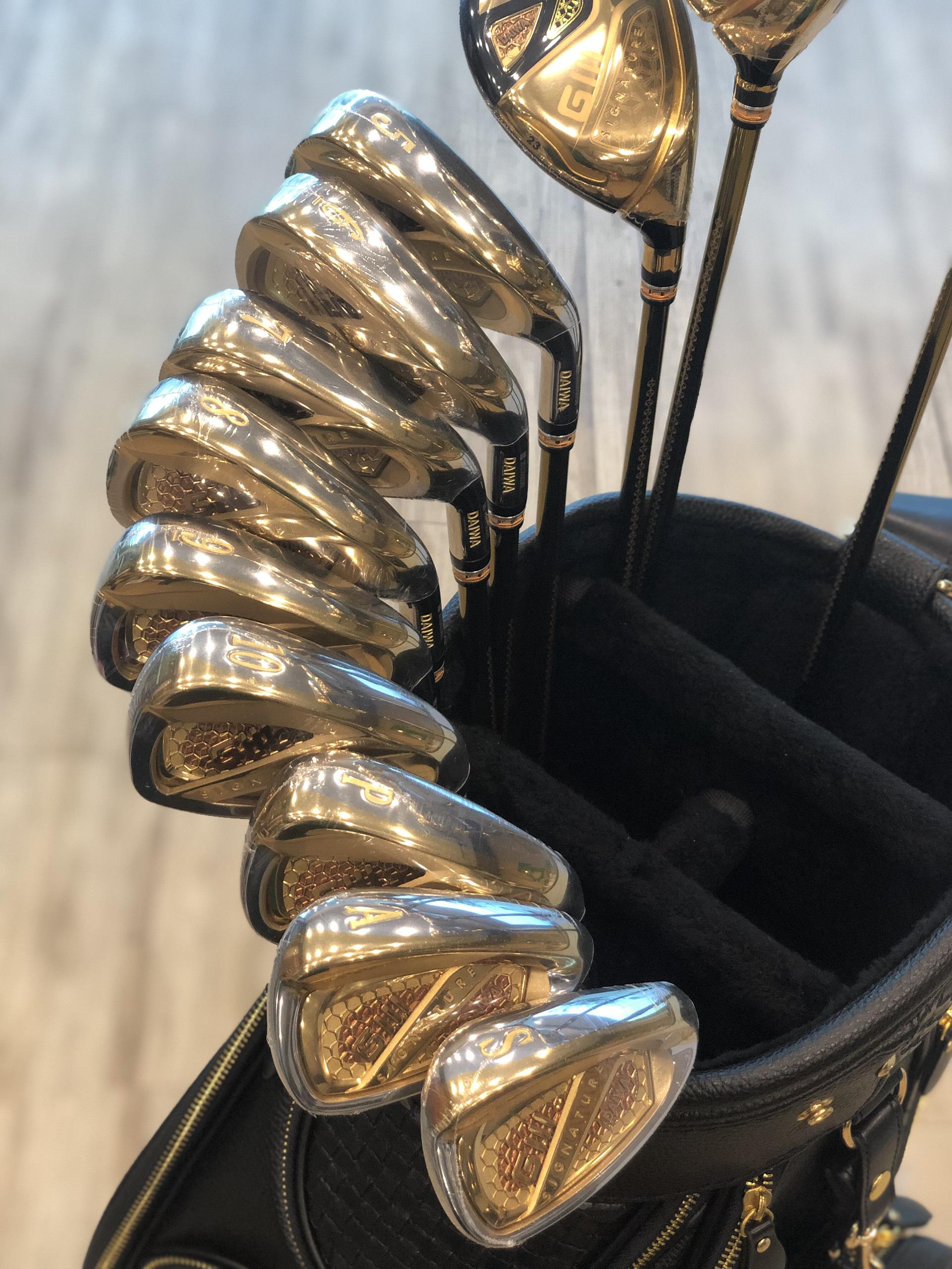 Fullset bộ gậy GIII_DAIWA SIGNATURE 4 sao mệnh danh là "đỉnh cao của các dòng gậy Nhật Bản" bởi không chỉ chất lượng gậy mà còn thiết kế vô cùng tinh tế, sang trọng và quyền lực. GIII_DAIWA SIGNATURE 4 sao tự hào là đại diện vẻ đẹp của Made In Japan.Với những họa tiết tinh xảo bằng vàng trên toàn bộ đầu và thân gậy, mỗi bộ gậy của Daiwa_GIII được xem là những tác phẩm nghệ thuật truyền thống Nhật Bản mang vẻ đẹp vô song.